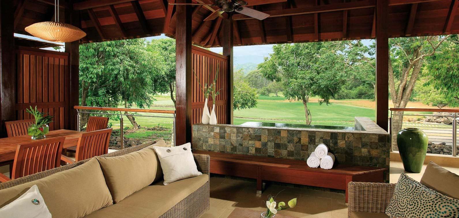 3 BEDROOM PRESTIGE VILLA GOLF VIEW PRIVATE POOL (330 кв. м) патио с открытым персональным бассейном, частный сад, гостиная с обеденной и кухонной зонами (стол на 10 персон), 3 спальни, гардеробная, 3 ванные комнаты, гостевой туалет. Расположены около гольф-поля. Вид на гольф-поле. Услуги персонального камердинера.