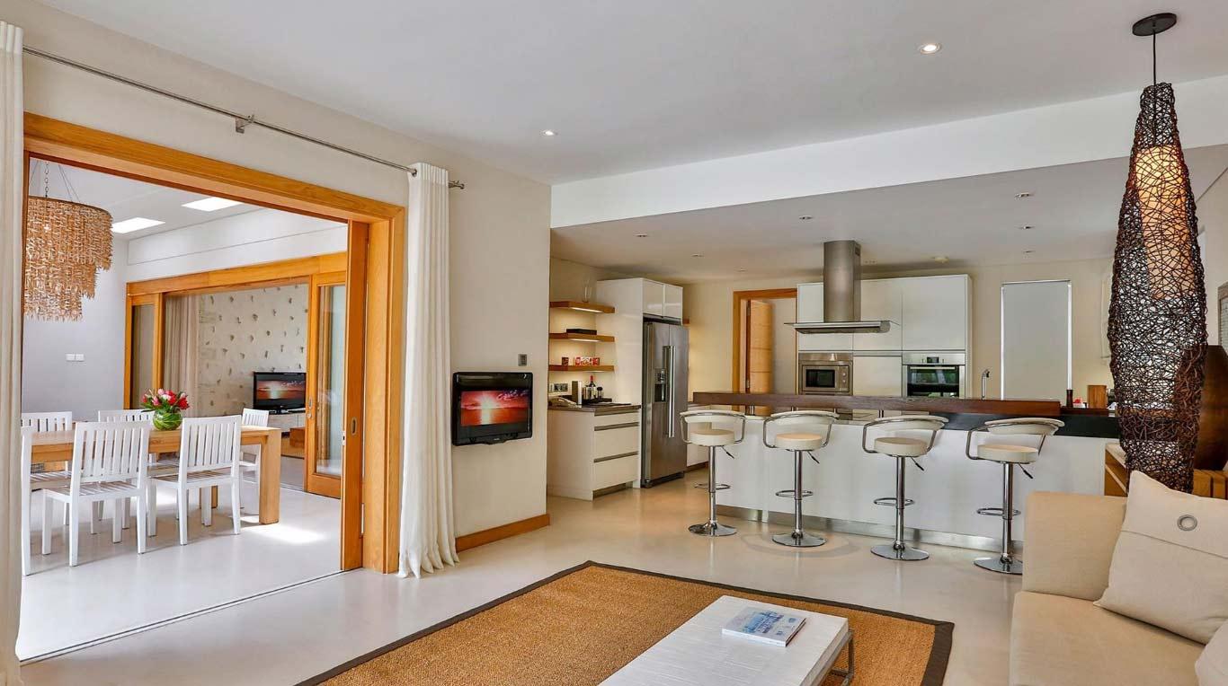 1 BEDROOM PRESTIGE SUITE GOLF VIEW (160 кв. м) терраса с открытым персональным бассейном и обеденной зоной на открытом воздухе (стол на 4 персоны), гостиная с обеденной зоной (стол на 8 персон), кухня, спальня, гардеробная, ванная комната. Вид на гольф-поле.