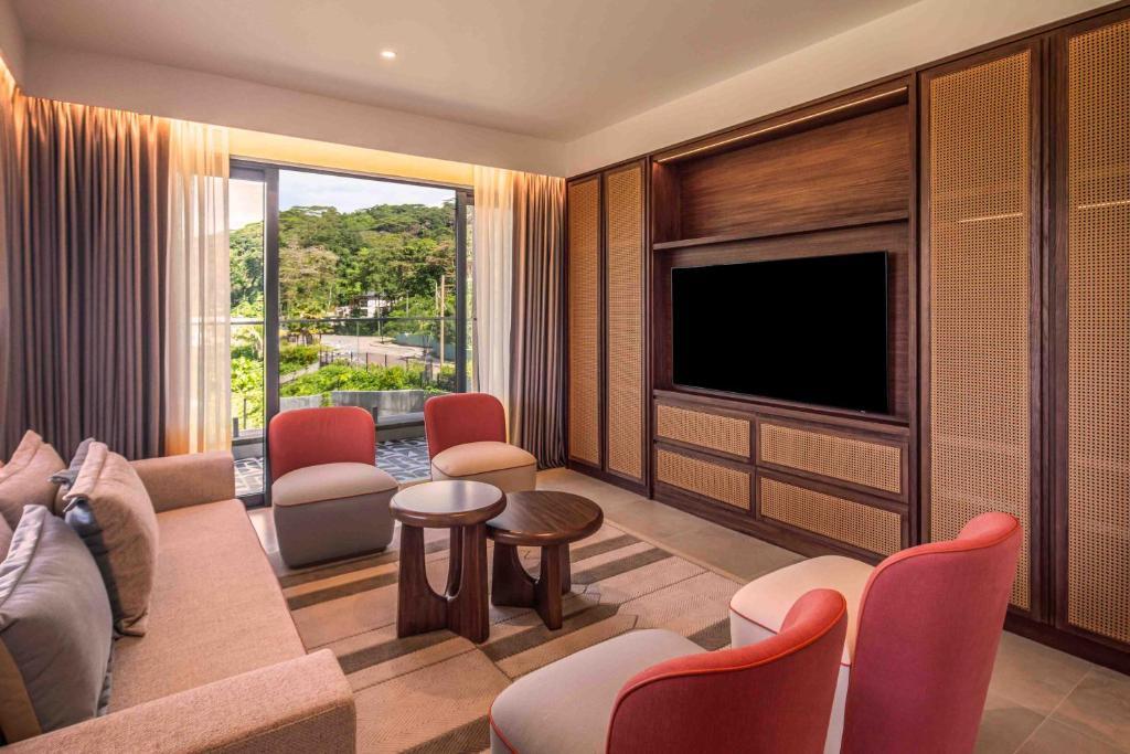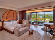 • JUNIOR SUITE (71 кв. м). В номере: спальня с кроватью king-size, зона гостиной с диваном и обеденным столом, балкон с шезлонгами. Максимальное размещение: 3 человека.