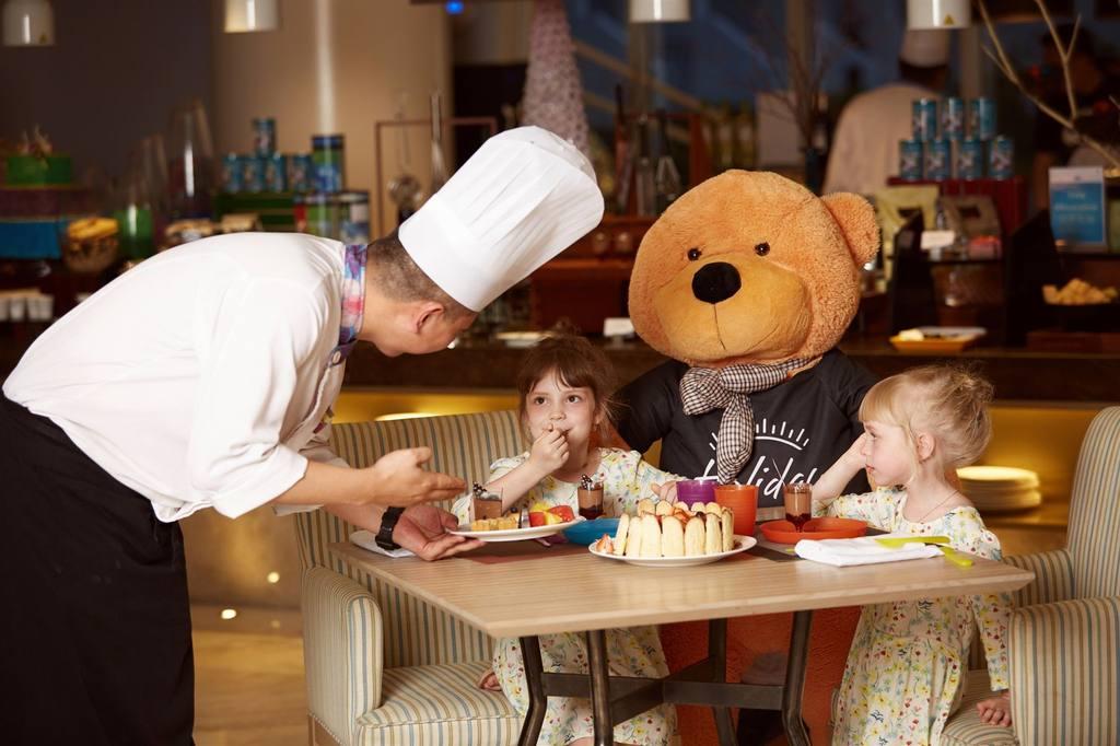 - Детский клуб площадью 500 кв. м с 6 тематическими зонами: «Замок непоседы», «Тренировочный лагерь воинов», «Автодром», «Интерактивная игровая система Скетч-Аквариум», «Скалодром» и «Зона для игр с родителями».