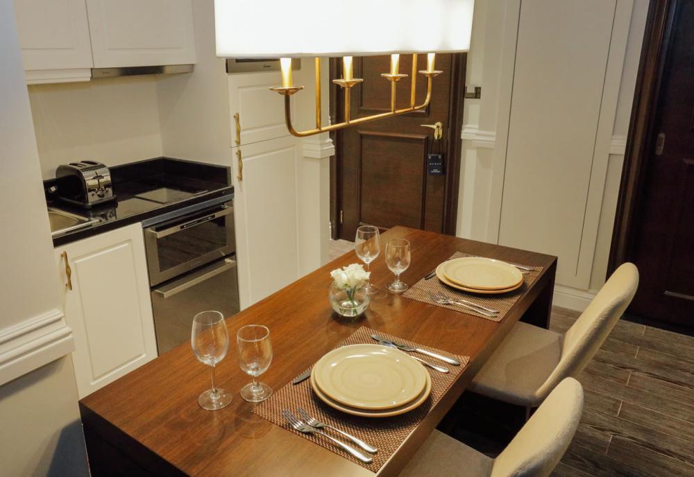 · Executive Studio (48 кв.м) 1–13 этажи, вид на город или частичный вид на море, кровать king-size, есть софа, кухонный уголок (холодильник, микроволновая печь, плита, духовка, посудомоечная машина, тостер, кухонные принадлежности), макс. 3 или 2+2 чел.