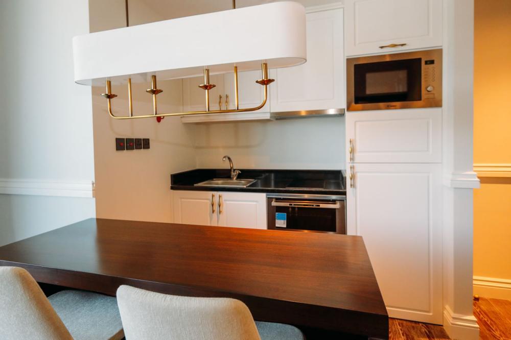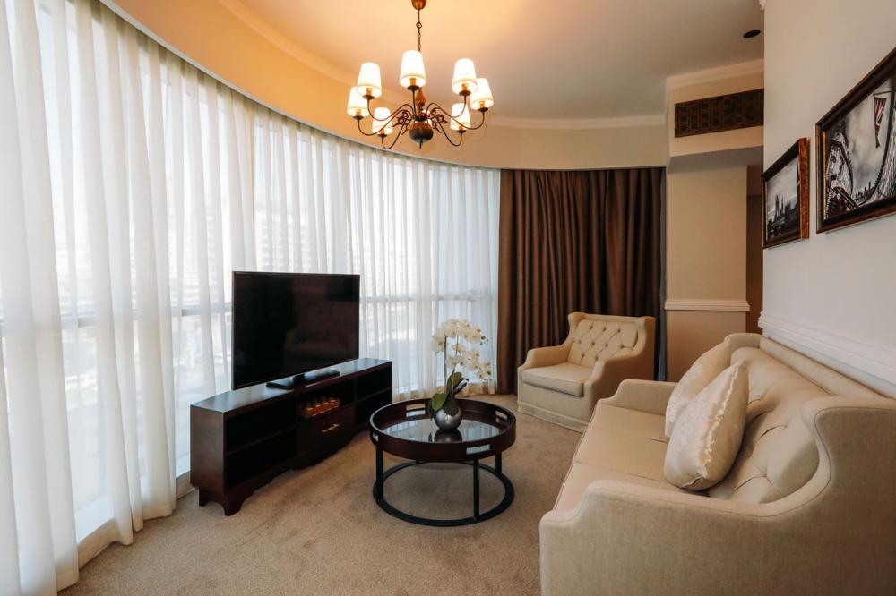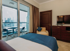 · 1 Bedroom Premium Appartment (50-70 кв.м) 16-17 этажи, вид на город или частичный вид на море, гостиная, спальня с дверью, кровать king-size, есть софа, кухонный уголок (холодильник, микроволновая печь, плита, духовка, посудомоечная машина, тостер, кухонные принадлежности), стиральная машина, балкон не во всех номерах, макс. 4 чел.