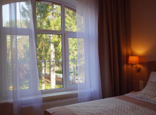 - Двухместный номер с балконом / Double room with balcony (25 кв. м): балкон, спальня с двуспальной или двумя отдельными кроватями, ванная комната с душем. Расположены на 3 этаже. Вид на город.