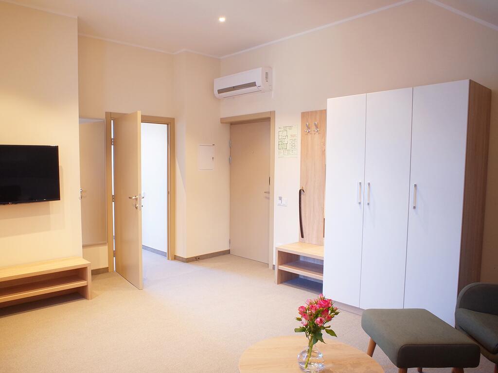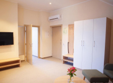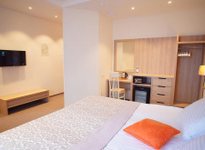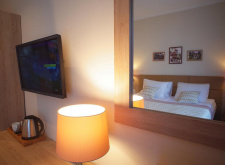 - Семейный полулюкс / Family junior suite (40 кв. м): спальня с гостиной зоной (двуспальная или две отдельные кровати), ванная комната с душем. Расположены со 2 по 3 этаж. Вид на город.
