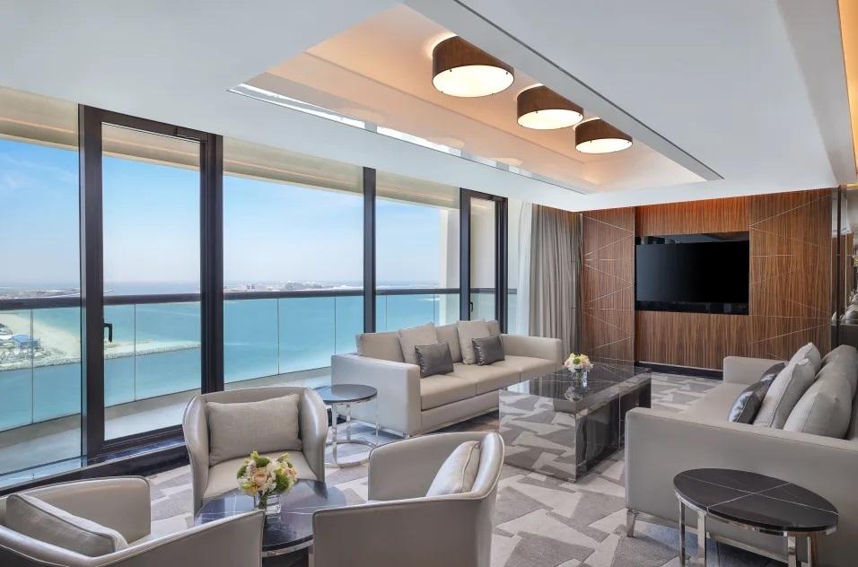 Deluxe One Bedroom Suite With Sea View (вид на море, гостиная и спальня, кровать king, 2 балкона, доступ в Executive Lounge, макс. 2+2 или 3 чел., 83 м2).