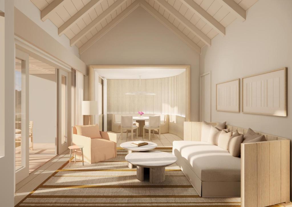 BEACHFRONT VILLA (180 кв.м) обеденный павильон на открытом воздухе, терраса с открытым персональным бассейном, гостиная с обеденной зоной, мини-кухня, спальня с кроватью «king-size», гардеробная, ванная комната с ванной и душевой кабиной с функцией «тропический дождь», душ на открытом воздухе. Расположены рядом с пляжем.