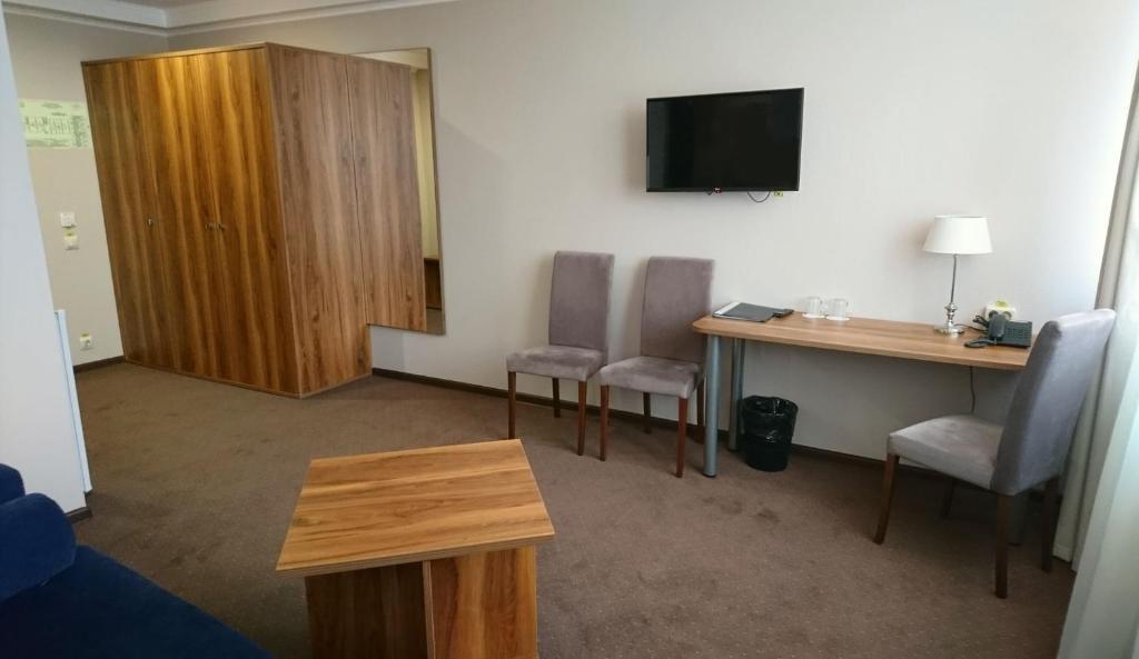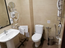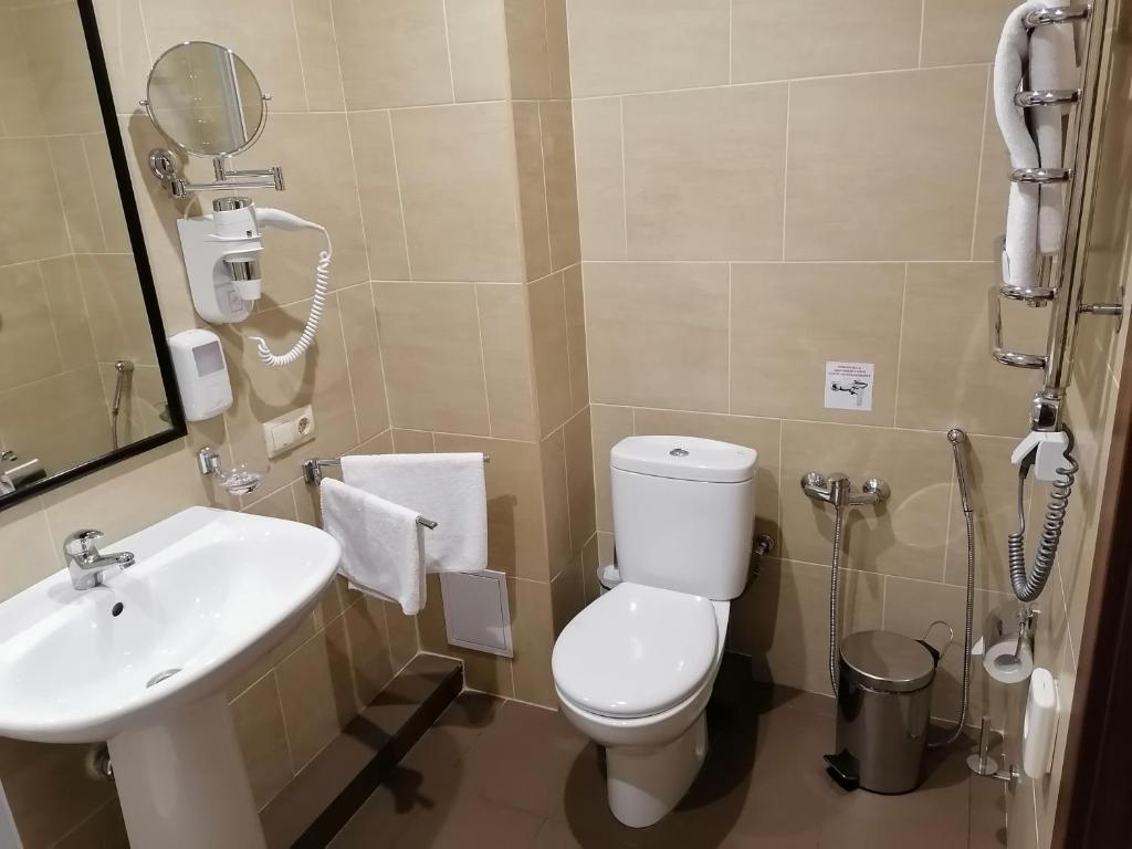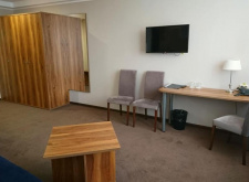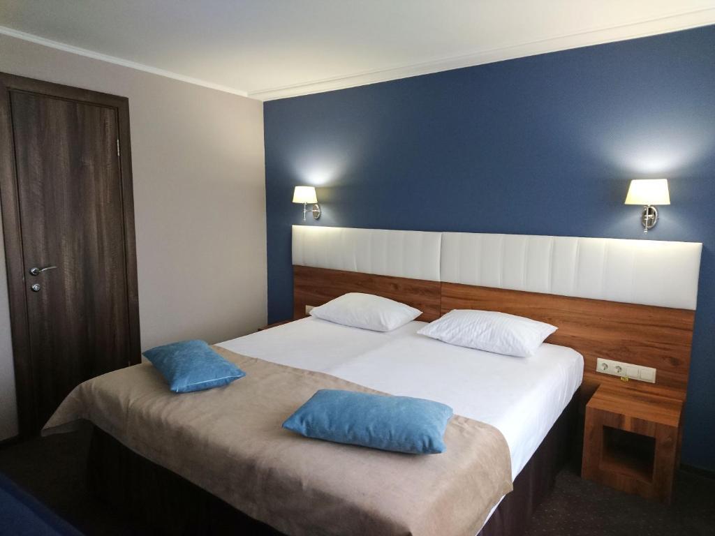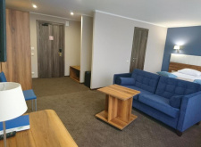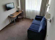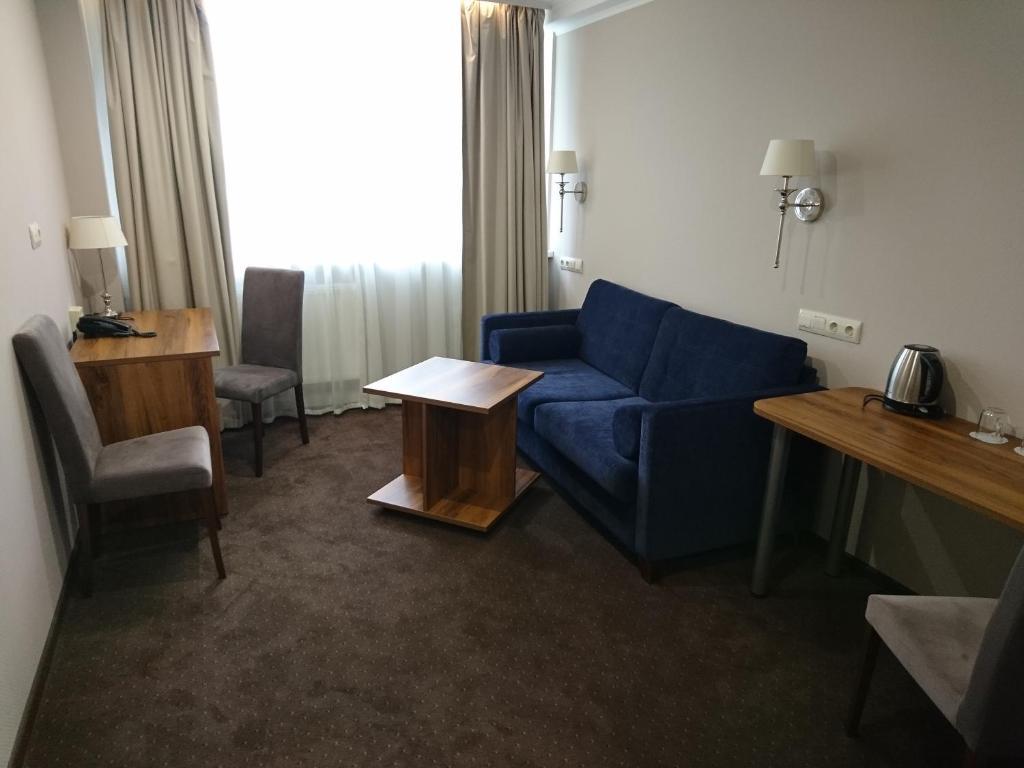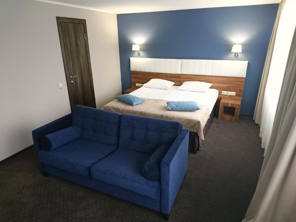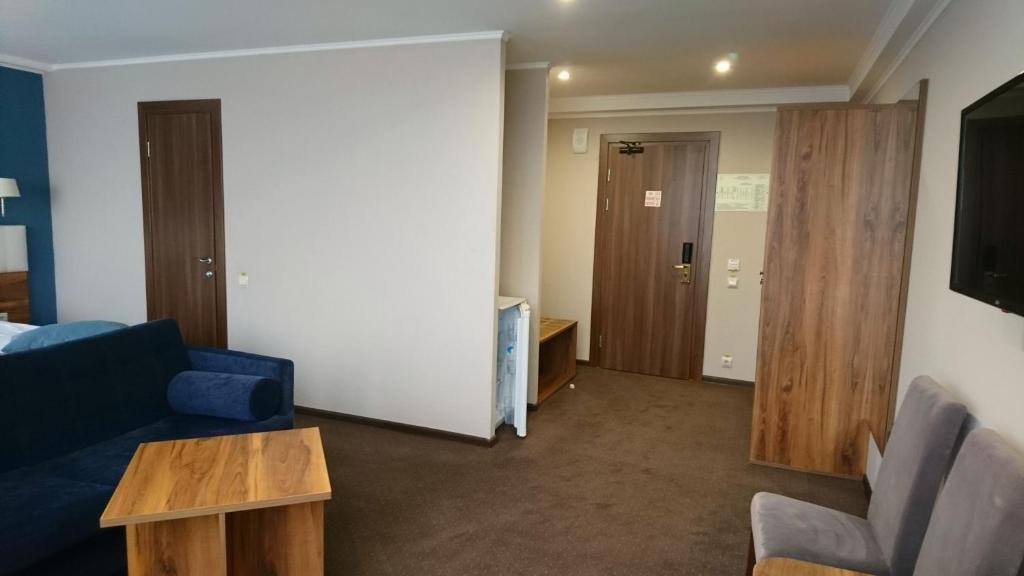 • Двухкомнатный двухместный номер общей площадью 34 кв. м. с собственной ванной комнатой. В номере имеется спальня с двуспальной кроватью (возможен вариант двух односпальных кроватей), а также гостиная комната, где расположен диван и письменный стол. В номере также находятся журнальный столик, шкаф-гардероб, холодильник, чайник, два телевизора (один в гостиной, другой в спальне), телефон для связи с рецепцией, собственная ванная комната с душем (в ванной комнате имеется фен, увеличительное косметическое зеркало, полотенцесушитель).