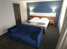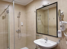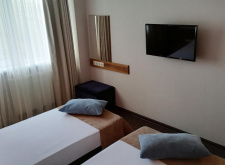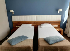• Однокомнатный двухместный номер 1 категории идеально подойдет для отдыха двух человек или же семьи с ребенком (в некоторых номерах имеется диван, который можно использовать как дополнительно место за дополнительную плату. Просим заранее уведомлять, если необходим номер с диваном). В номере находятся две односпальные или одна общая двуспальная кровать, телевизор, просторный шкаф-гардероб, холодильник, телефон для связи с рецепцией, собственная ванная комната с душем (также в ванной комнате имеется фен, увеличительное косметическое зеркало, полотенцесушитель).
