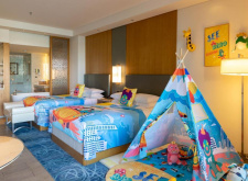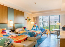 - DELUXE FAMILY ROOM WITH 1 BUNK BED (45 км.м) семейный номер с двухъярусной кроватью для детей, 1 двуспальной или 1 односпальной кроватью. В номере бесплатный Wi-Fi, телефон, телевизор, вода, мини- бар, кофеварка/чайник, сейф(платный). Дополнительные раскладные и детские кровати не допускаются.