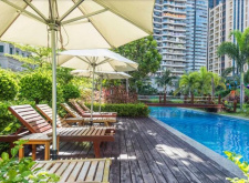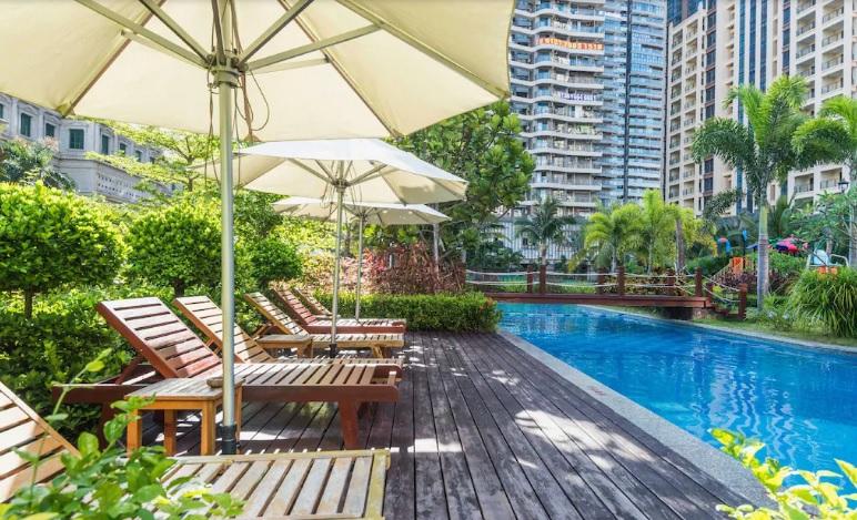• DELUXE POOL VIEW ROOM (66м²). Номера с видом на бассейн, расположены с 6 по 14 этажи. Комфортабельные номера с двумя односпальными кроватями, диваном, мини-кухней, ванной комнатой с душем, балконом. Максимальное размещение: 3+1.