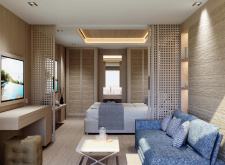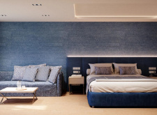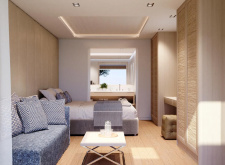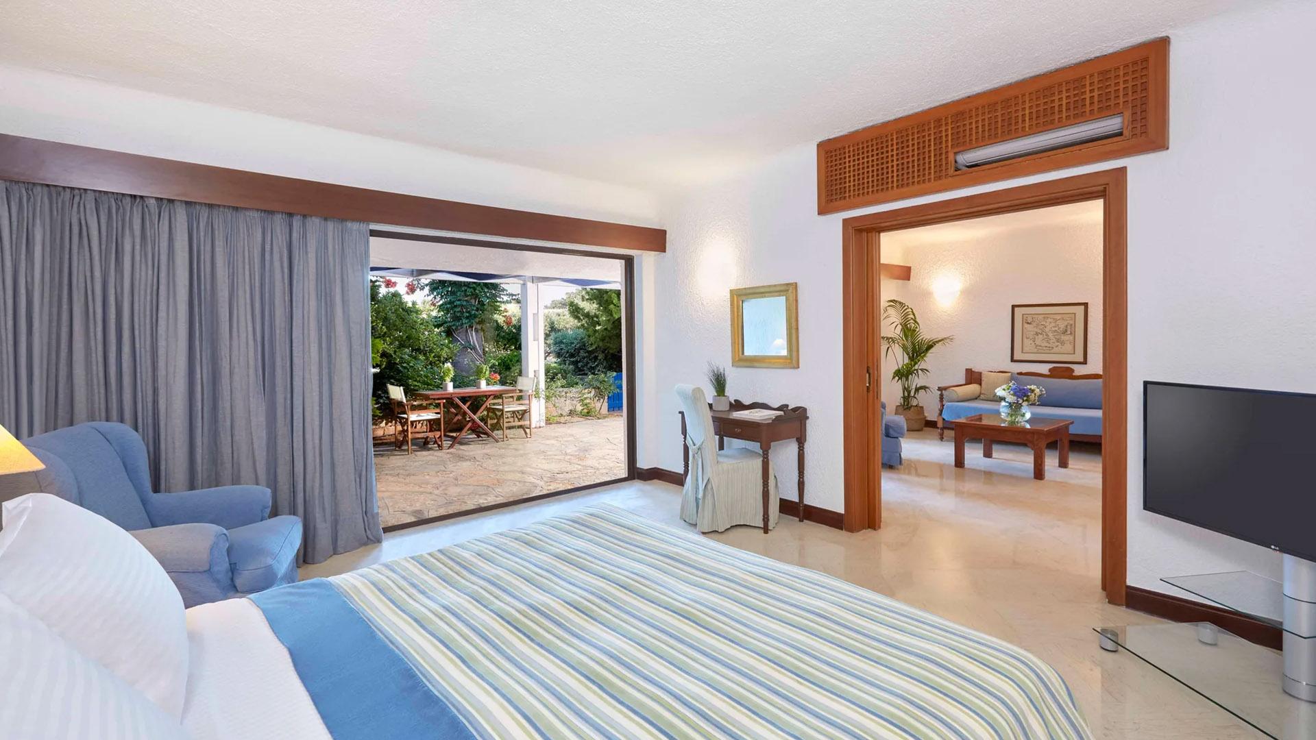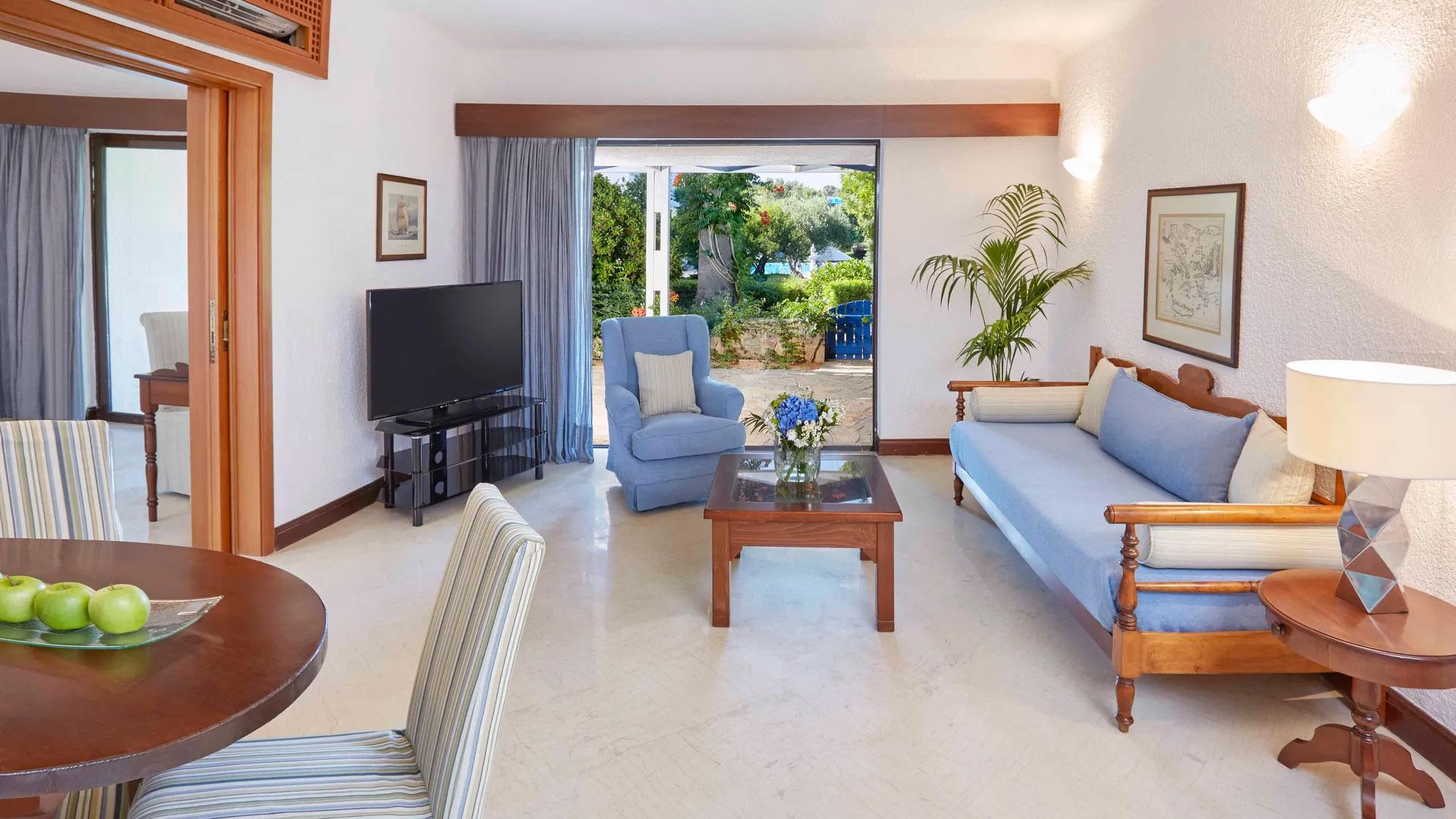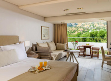 - Family Suite Open Plan Garden View – 40 кв.м (макс. 3+1): Gold Club; номер открытой планировки с двуспальной кроватью, гостевая зона с односпальной диваном-кроватью, ванная комната с ванной (некоторые из сьютов располагают дополнительной ванной комнатой), WC с душем, оборудованный балкон