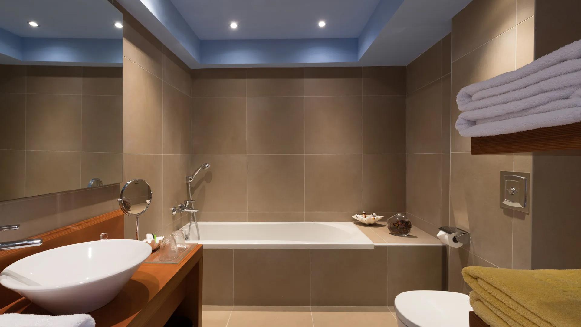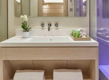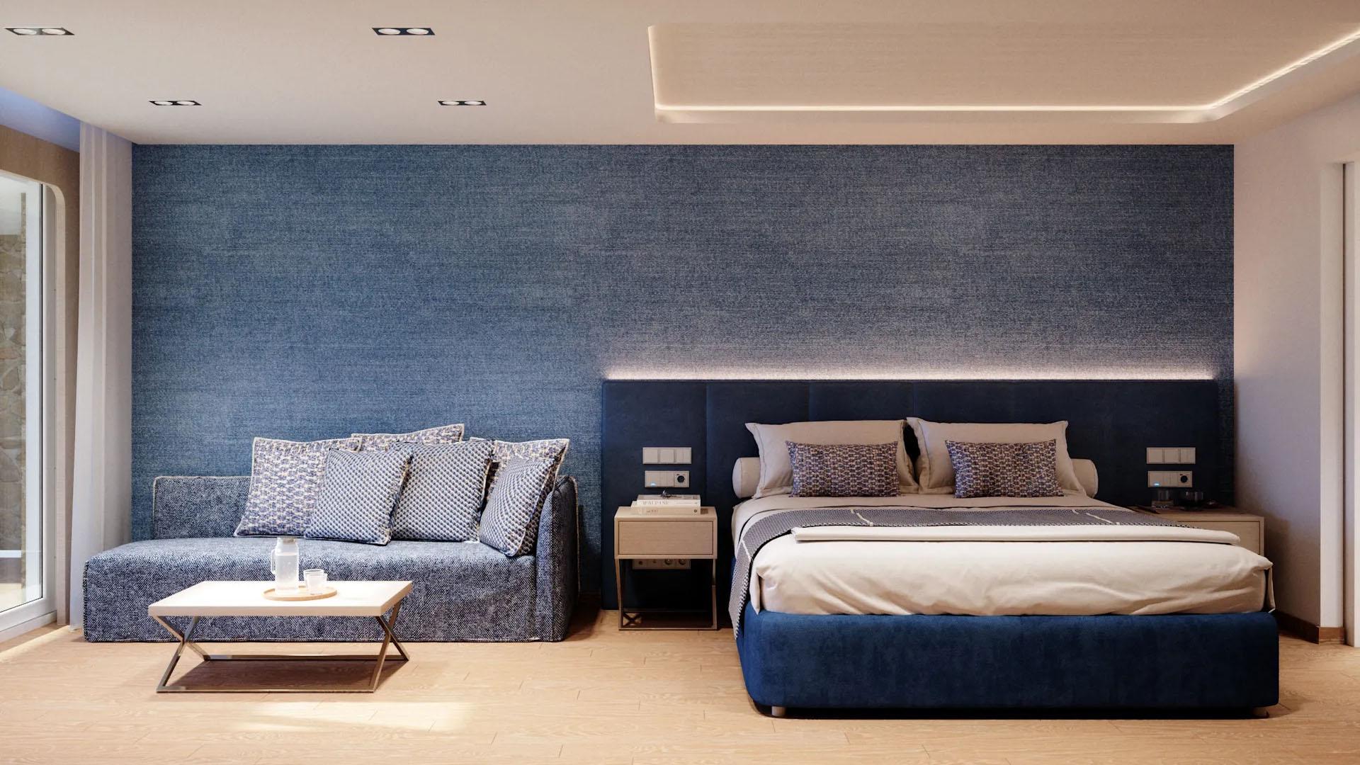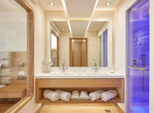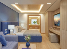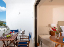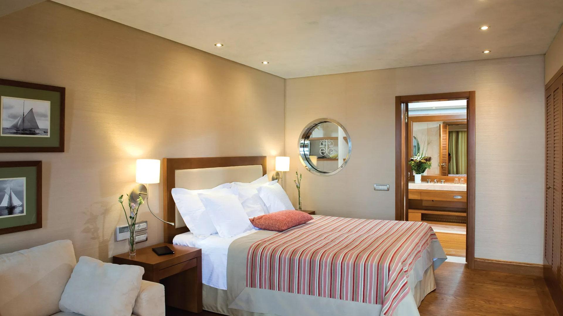 - Deluxe Hotel Suite Two Bathrooms Sea View – 55 кв.м (макс. 3+1): Gold Club; спальная комната с двуспальной кроватью и гостиная с диваном-кроватью раздельные либо открытой планировки, ванная комната с джакузи и отдельным душем, в некоторых оборудованы - парная или тренажеры, оборудованный балкон