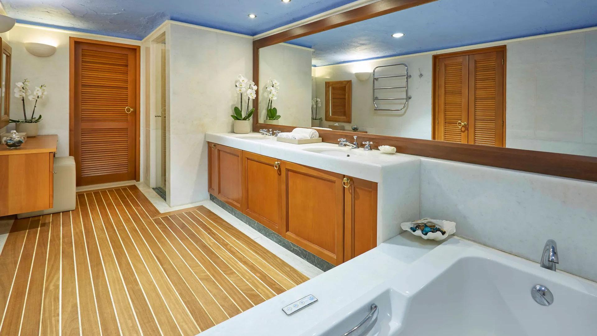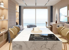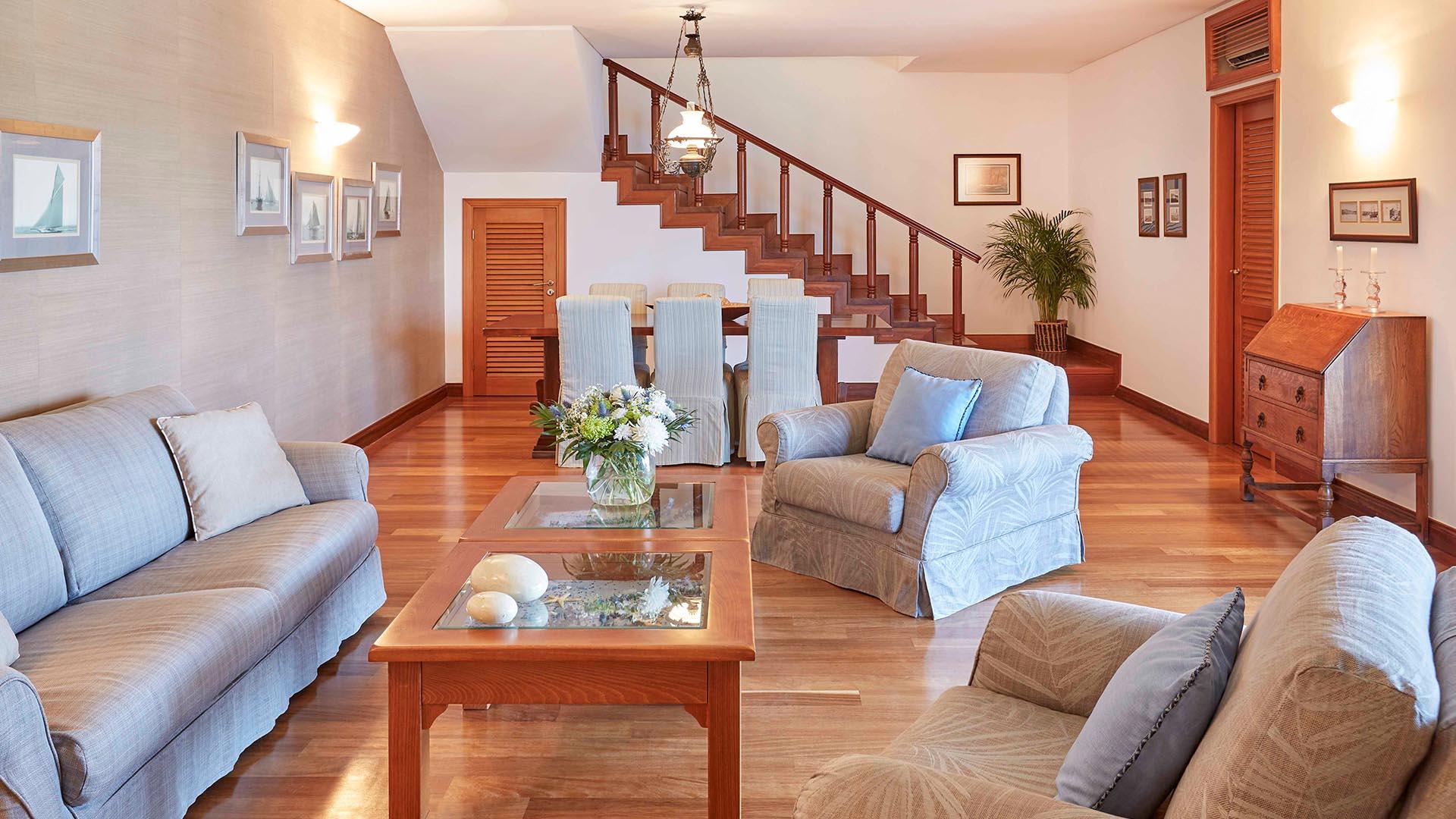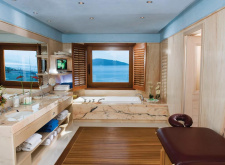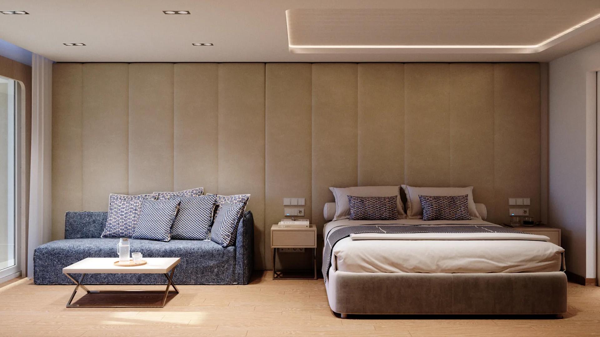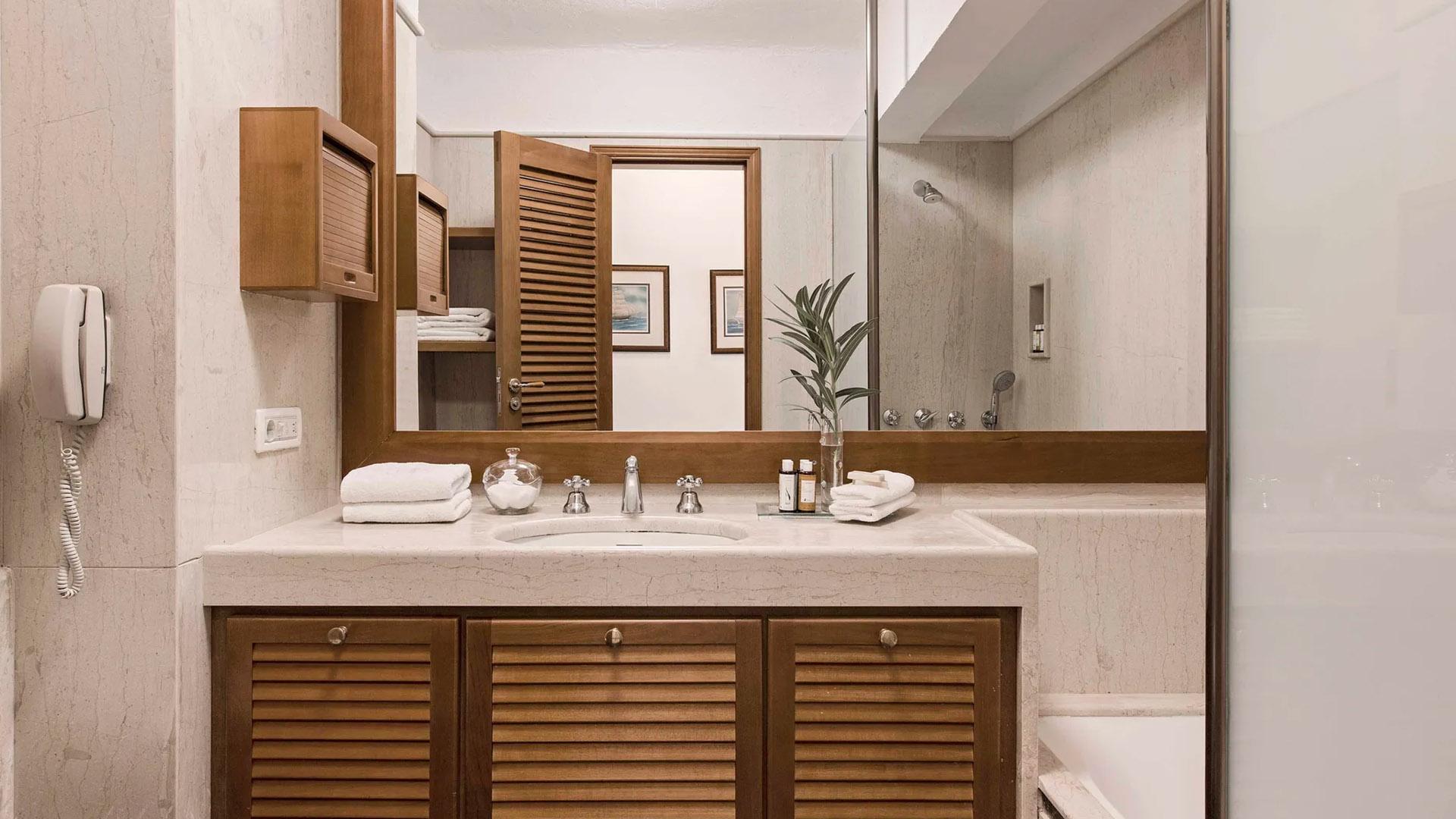- Presidential Suite Two Bedrooms Maisonette & Two Bathrooms Waterfront Private Pool – 100 кв.м (макс. 3+1): Platinum Club 1-я береговая линия; двухуровневый мезонет, на нижнем уровне расположена гостиная с обеденной зоной, отдельная гардеробная комната, ванная комната с ванной, оборудованная деревянная веранда с патио и собственным бассейном; на верхнем уровне расположена спальная комната с двуспальной кроватью, ванная комната с джакузи и паровой комнатой, оборудованный балкон с видом на море