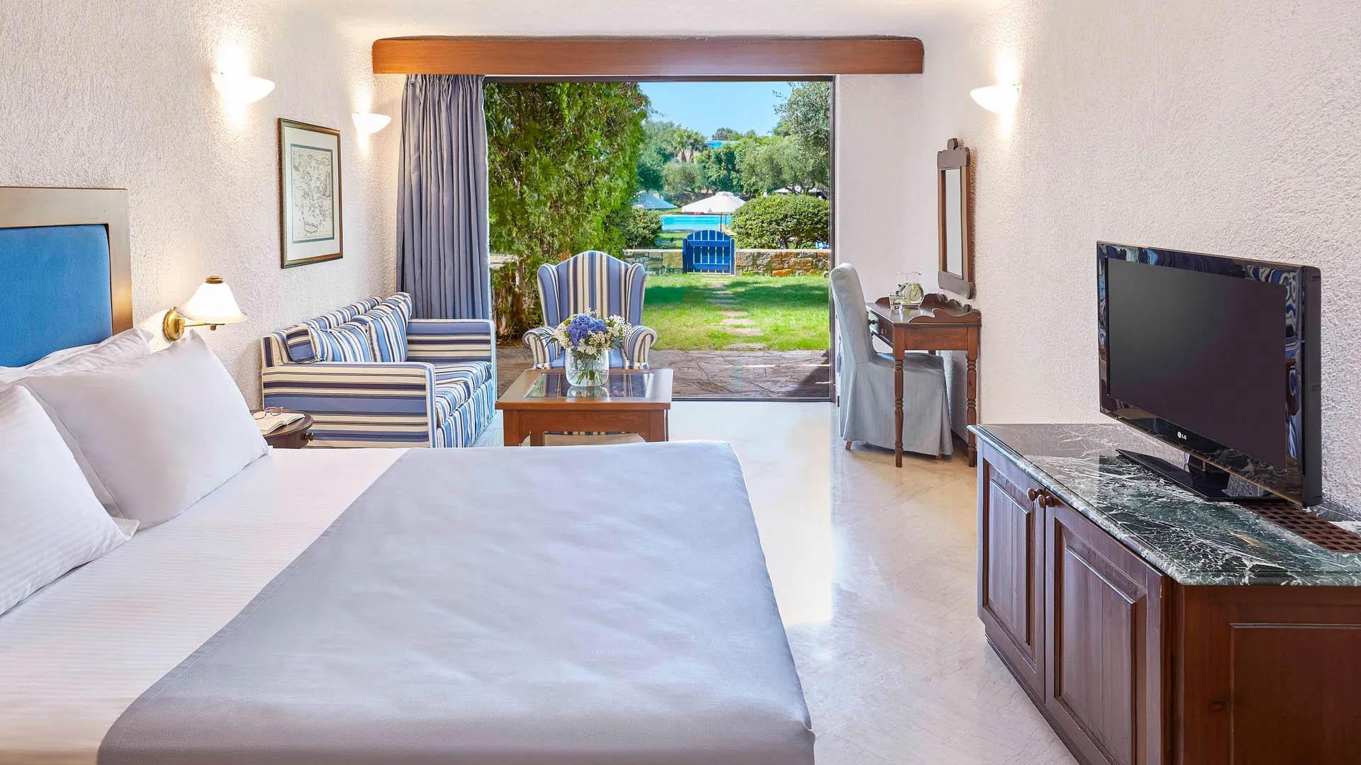 Все номера и бунгало оформлены в традиционном стиле с легким акцентом на современную роскошь. Одной из главных особенностей отеля является его разнообразная кухня, способная впечатлить любого гурмана: к услугам гостей множество заведений — от неформальной и атмосферной греческой таверны до отмеченного наградами ресторана Thalassa, расположенного на романтичной террасе у самой воды