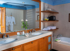 - Executive Bungalow Suite Two Bathrooms Pool View – 60 кв.м (макс. 3+1): Gold Club; спальная комната с двуспальной кроватью, отельная гостиная с диваном-кроватью, 2 ванные комнаты с джакузи и раздельной душевой, WC с душем, в некоторых бунгало – кухонный уголок, оборудованная веранда с собственным двориком
