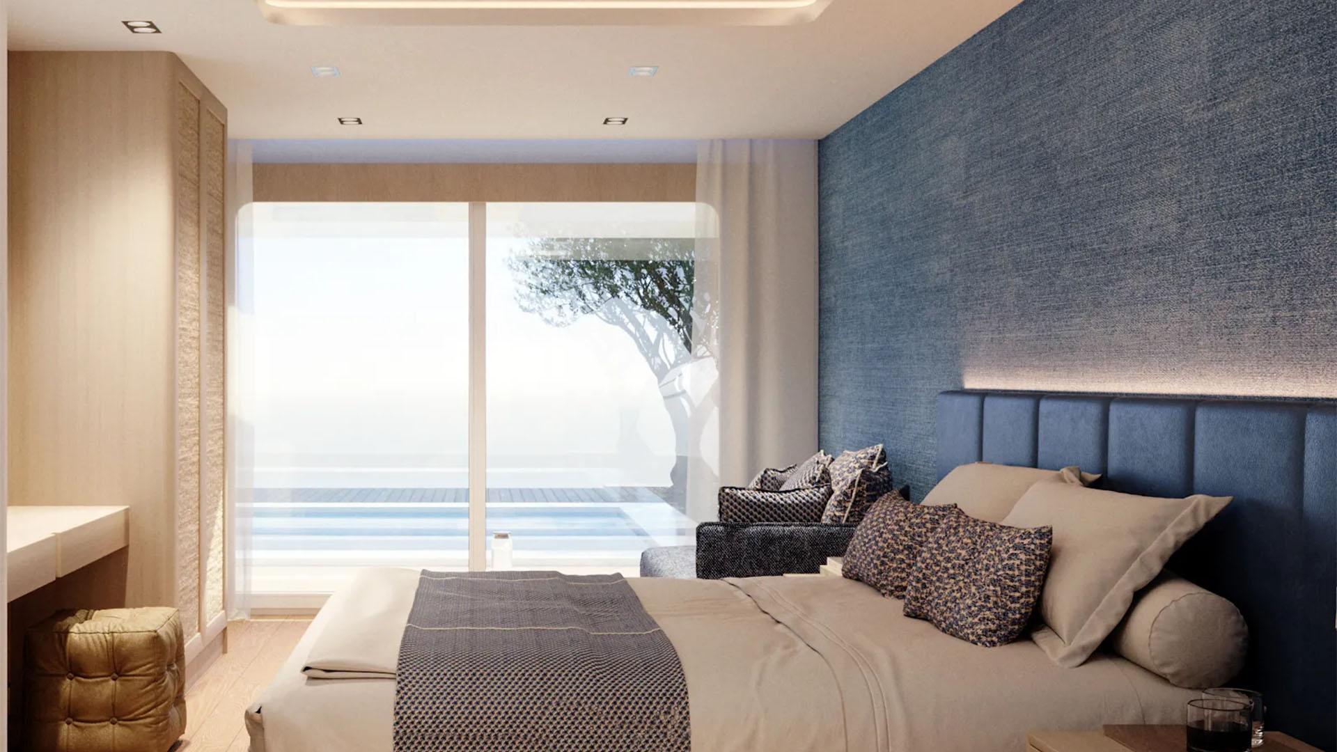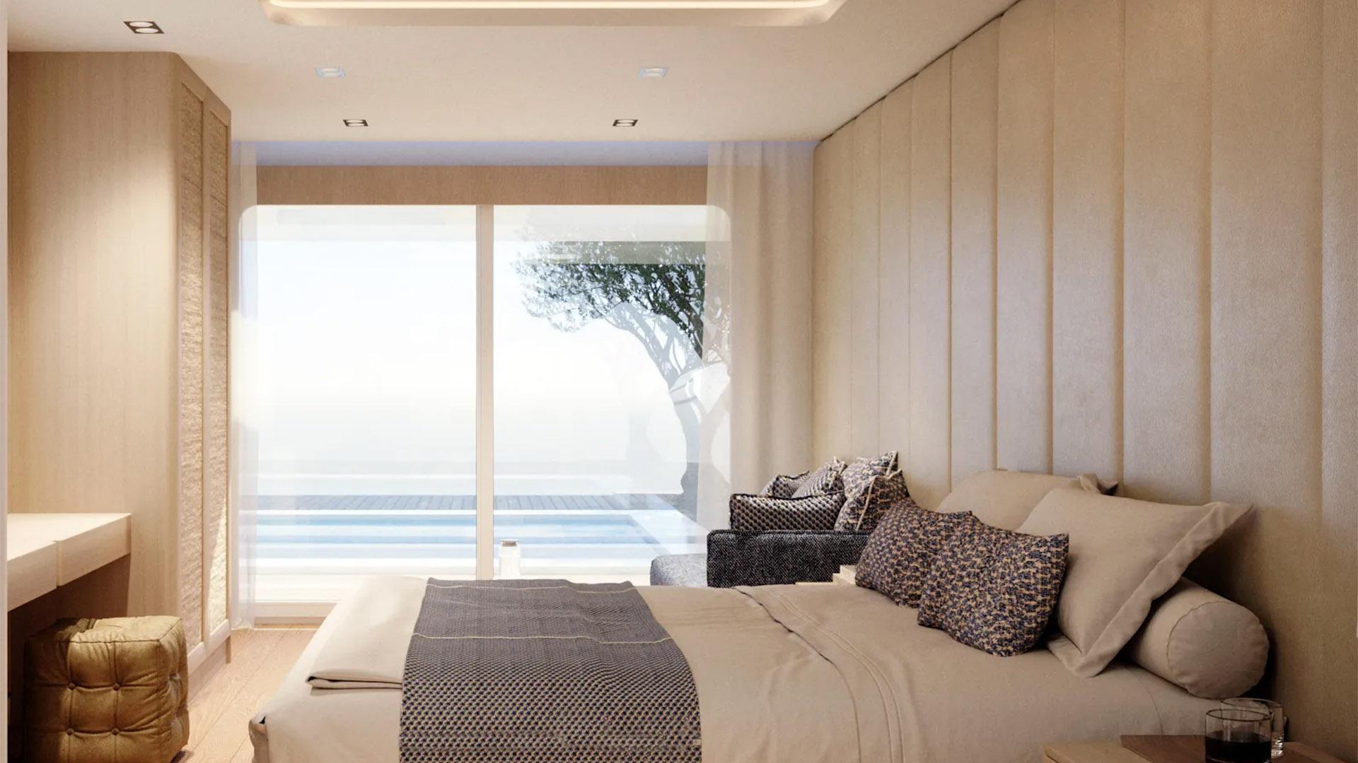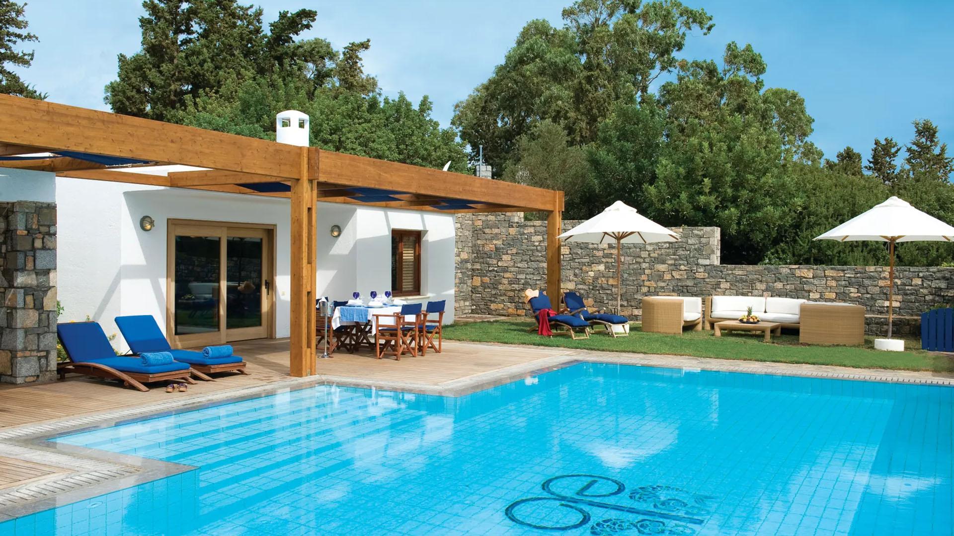 - Mediterranean Villa Two Bathrooms Front Sea View Private Pool – 65 кв.м (макс. 3+1): Gold Club; спальная комната с двуспальной кроватью, отдельная гостиная с диваном-кроватью, ванная комната с джакузи, отдельная душевая, оборудованная терраса с собственным бассейном