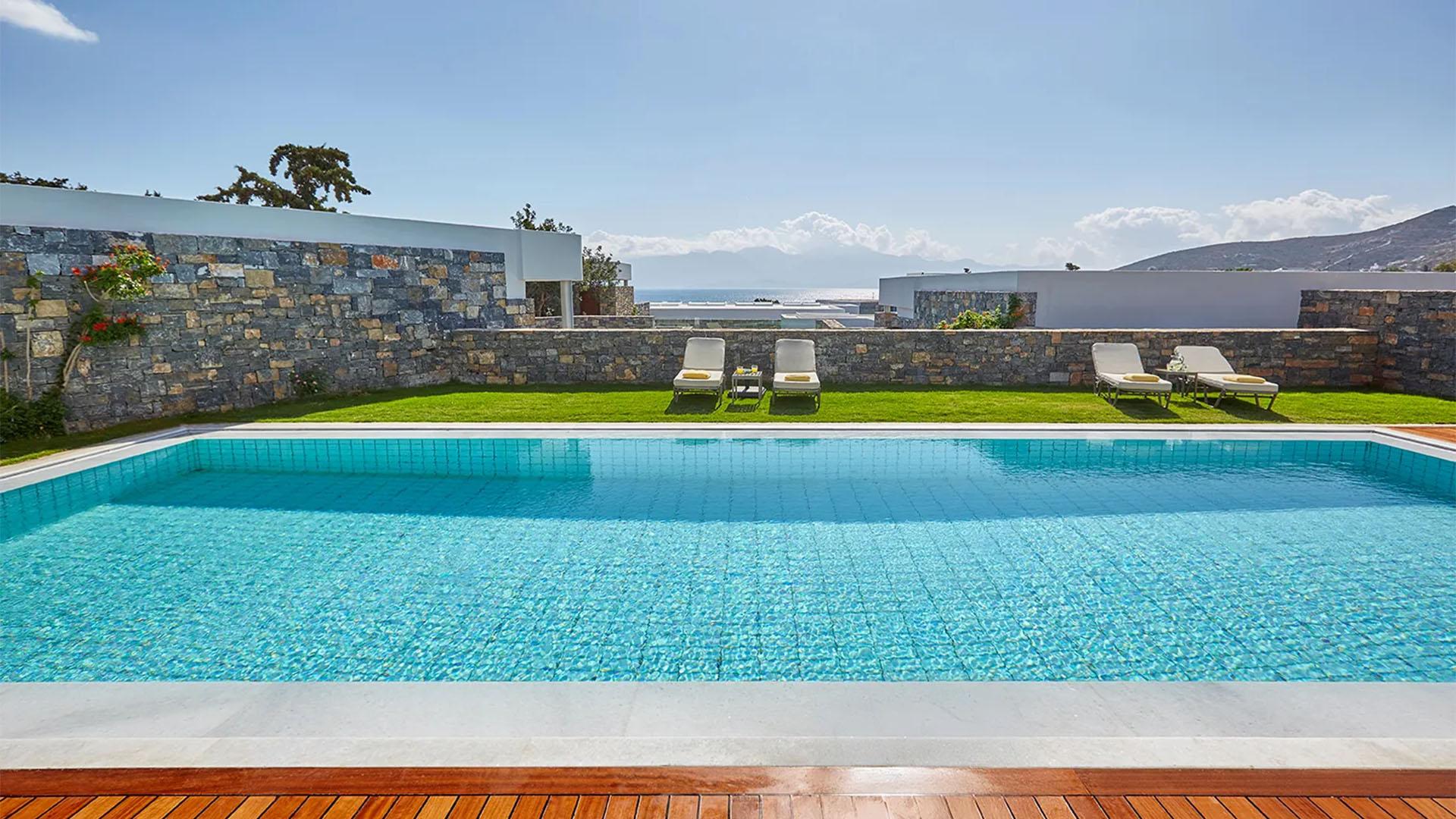 - Grand Suite Two Bedrooms Two Bathrooms & One Sitting Room Front Sea View Private Pool – 135 кв.м (макс. 5): Platinum Club; 2 виллы, одна из которых состоит из спальной комнаты с двуспальной кроватью, отдельной гостиной с диваном-кроватью, ванной с джакузи, а вторая представляет собой номер открытой планировки с двуспальной кроватью и гостевой зоной с диваном-кроватью, ванная комната с душевой и ванной. Каждая вилла оборудована верандой с собственным бассейном с подогревом до 26°C