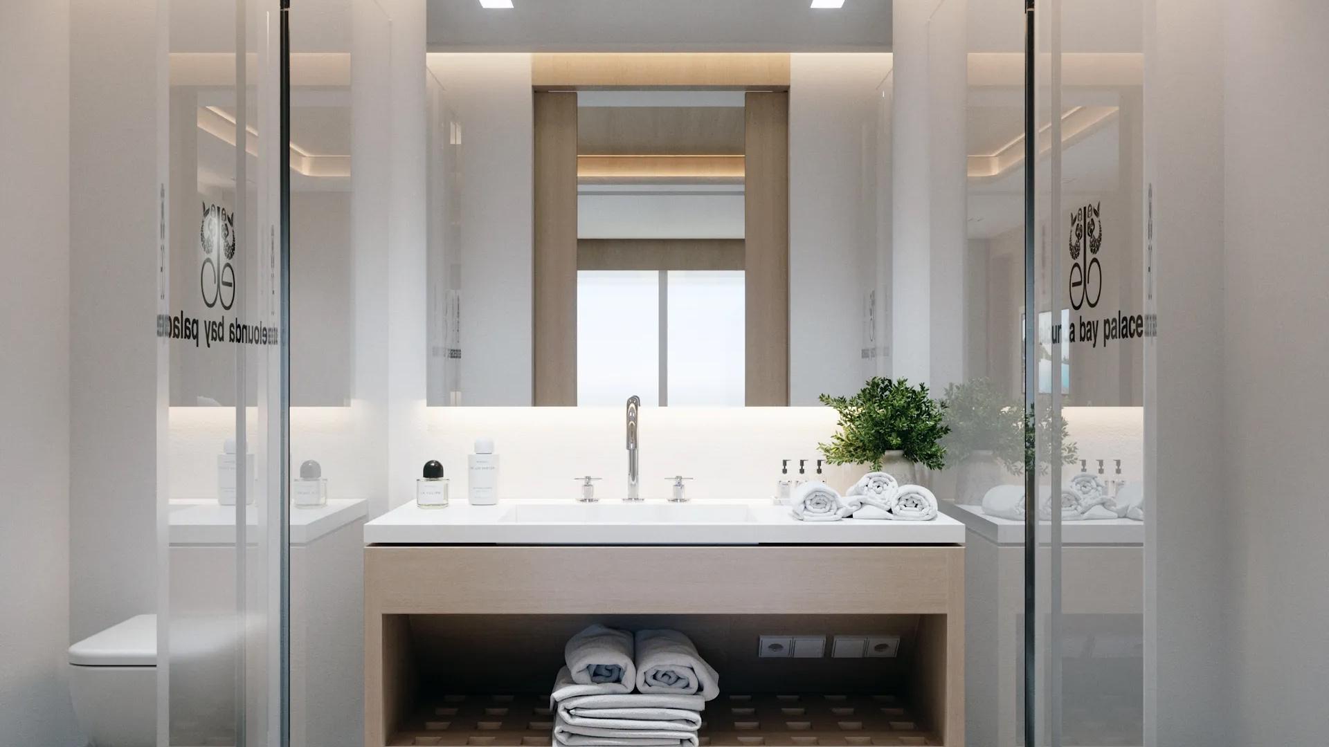 - The Palace Suite Two Bedrooms Two Bathrooms One Sitting Room Kitchen & Private Gym Front Sea View Private Pool – 250 кв.м (макс. 4): Platinum Club-2-я береговая линия; гостиная с обеденной зоной, полностью оборудованная кухня, две спальные комнаты с двуспальными кроватями, собственный тренажерный зал, две ванные комнаты, одна из которых оборудована джакузи, парной и душем, оборудованная терраса с собственным бассейном с гидромассажем, обогреваемым до 26°C
