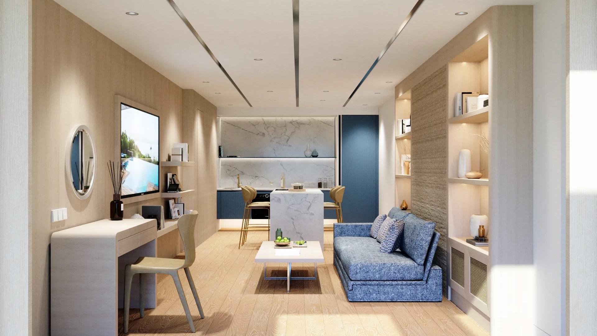 - Sea Whisper Villa Two Bedrooms Sea View – 110 кв.м (макс. 4+2): Platinum Club-2 или 3-я береговые линии; две спальные комнаты с двуспальными кроватями, две ванные комнаты с душевыми, отдельная гостиная с диваном-кроватью и обеденной зоной с кухонным уголком, оборудованная терраса с садом и видом на море