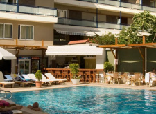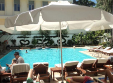 - Песчано-галечный пляж 300 м от отеля. Шезлонги и зонты платно