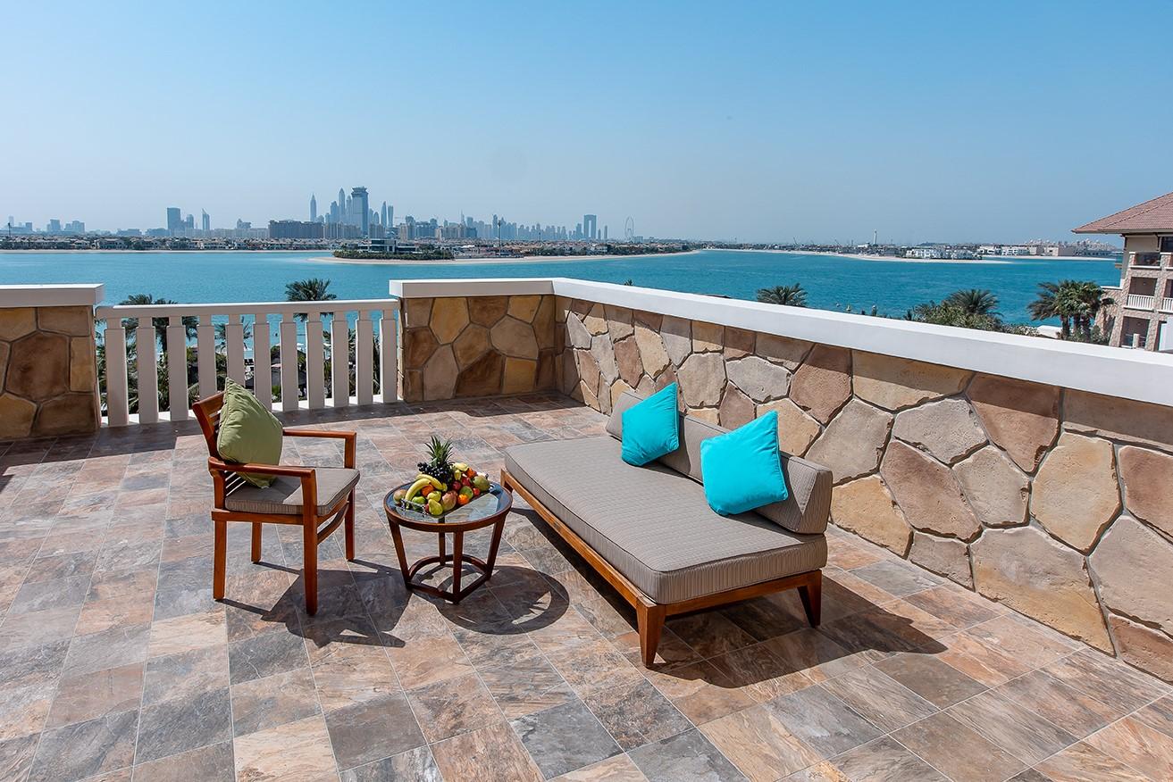 · Club junior suite with sofa bed (60 кв. м), двуспальная кровать или диван-кровать, гостиная зона, терраса, вид на Персидский залив или Palm Jumeirah. Доступ к Premier Lounge.