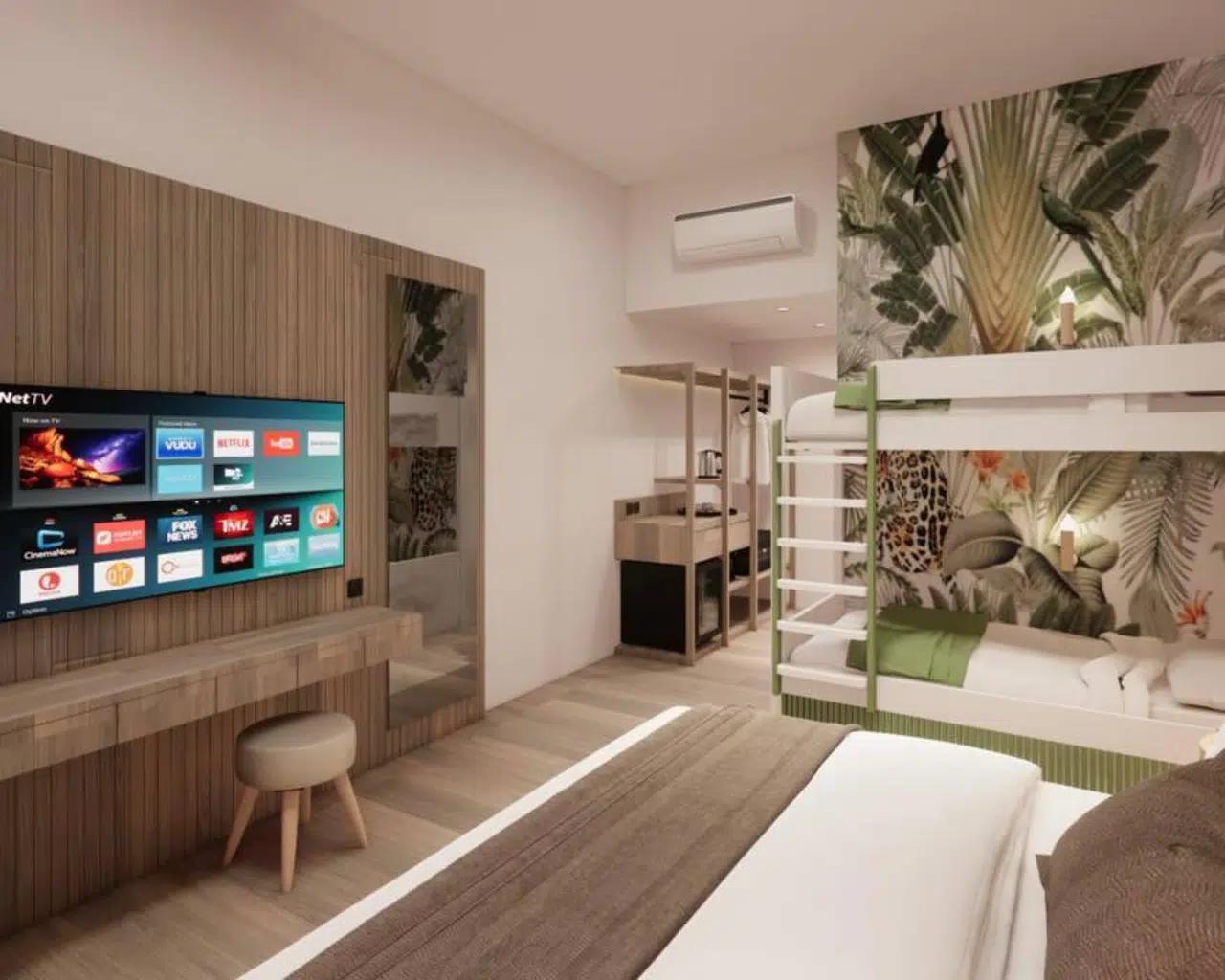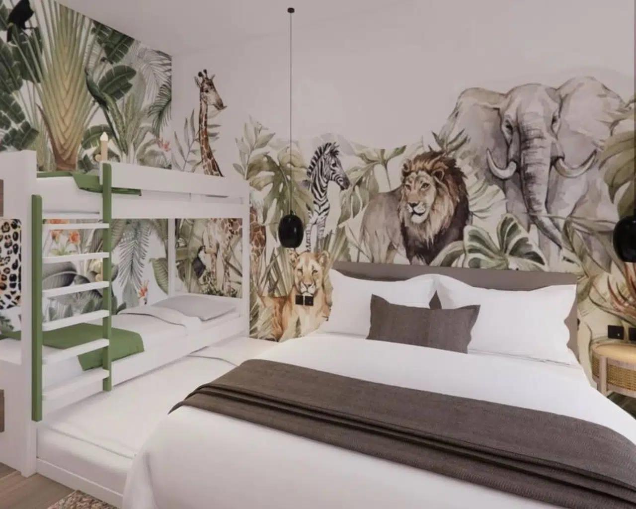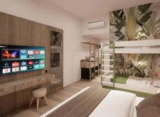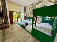 - FAMILY SAFARI GARDEN VIEW (43 кв.м., макс. 2+3) семейный номер с видом на тропический сад, с одной двуспальной кроватью и двухъярусной кроватью