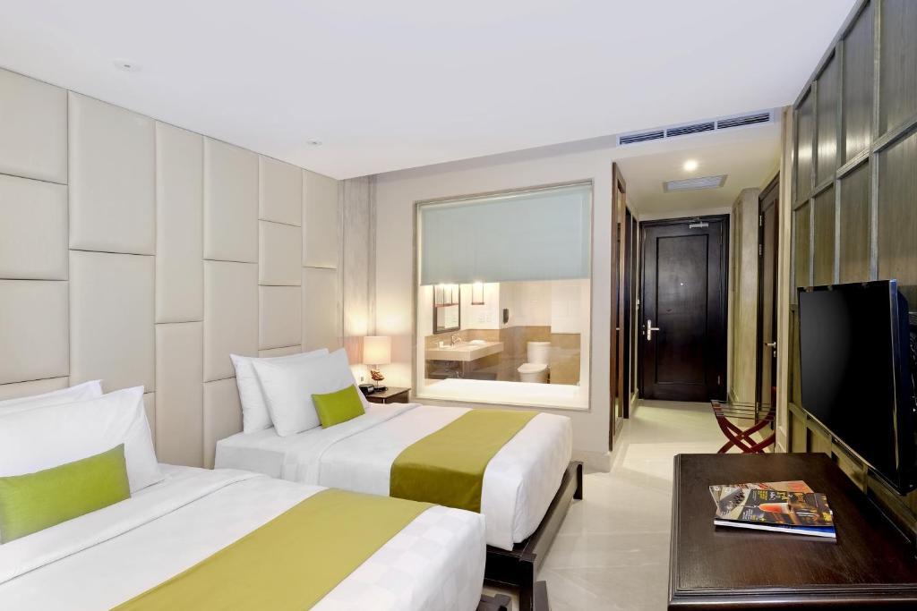 DELUXE BALCONY (35 кв.м) – номер с кроватью размера king-size или двумя раздельными. В числе удобств собственная ванная комната с ванной, а также балкон. Вид на город