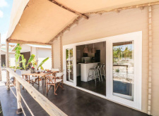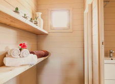 • SUITE APARTMENT (40 кв.м) Люксы похожи на настоящие дома, построенные по правилам зеленого строительства, сделанные из лучшего дерева в мире, северной ели, исключительного сочетания плотности, гибкости и эластичности. Вся древесина, используемая для наших домов, имеет сертификат FSC®, подтверждающий, что древесина поступает из лесов, управляемых правильно и ответственно в соответствии со строгими экологическими, социальными и экономическими стандартами. Suite Apartments площадью 40 кв.м, с кухонным уголком, оборудованным индукционной плитой, холодильником, посудой, гостиной, где удобный диван легко трансформируется в дополнительную двуспальную кровать, освещается большим французским окном, настоящая картина — стена с видом на сад и бассейн и видом на веранду. В уникальной обстановке люкса гостиная, разделенная перегородкой, оставляет место для спальни с двуспальной кроватью размера «king-size» и ванной комнаты.