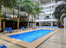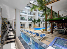 - DELUXE DOUBLE ROOM WITH POOL VIEW (30 кв.м) Номер с видом на бассейн оснащен кондиционером, кроватью размера "king- size", собственной ванной комнатой, чайником, телевизором с технологией Smart TV, Wi-Fi и мини -холодильником.