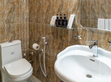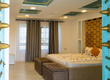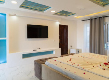 - DELUXE ROOMНомера оснащены кондиционером, кроватью размера "king- size", собственной ванной комнатой, чайником, телевизором с технологией Smart TV, Wi-Fi и мини -холодильником.