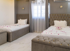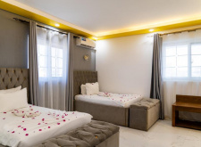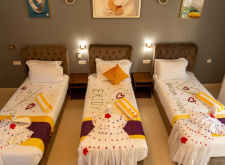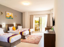 - DELUXE TRIPLE ROOM WITH BALCONY AND GARDEN VIEW (50 кв.м) Трехместный номер с видом на сад оснащен кондиционером, тремя односпальными кроватями, собственной ванной комнатой, чайником, телевизором с технологией Smart TV, Wi-Fi и мини -холодильником.