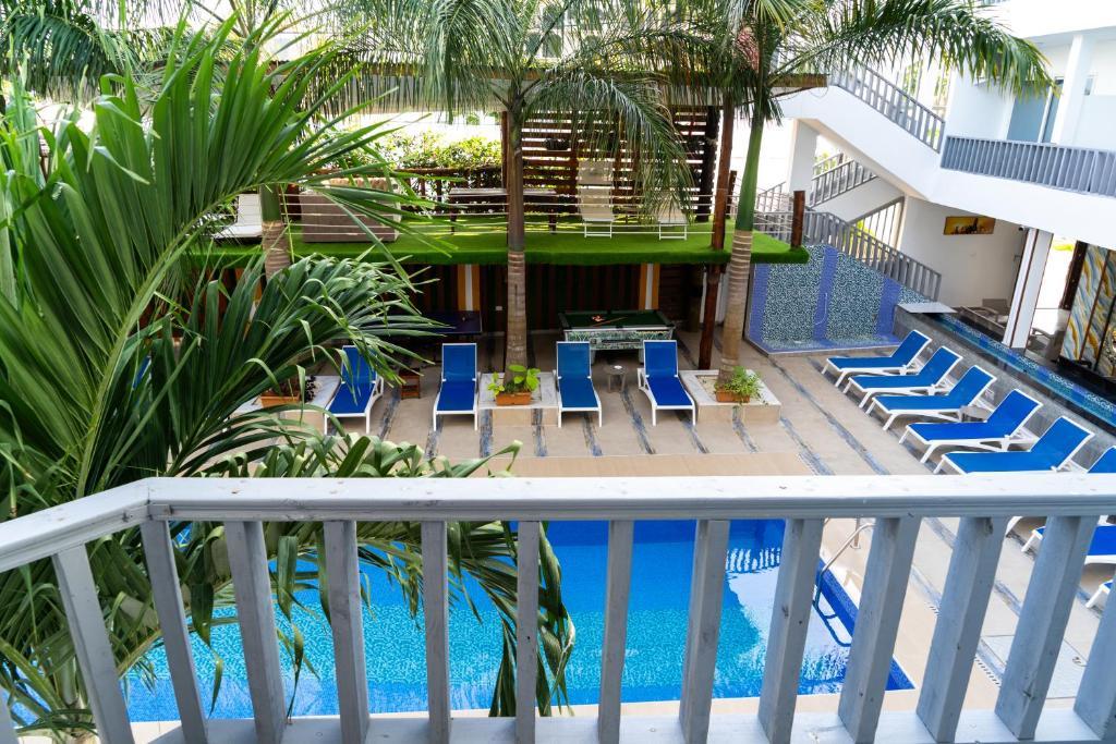 - DELUXE TWIN ROOM WITH BALCONY AND POOL VIEW (30 кв.м) Двухместный номер с видом на бассейн оснащен кондиционером, двумя односпальными кроватями, собственной ванной комнатой, чайником, телевизором с технологией Smart TV, Wi-Fi и мини -холодильником.